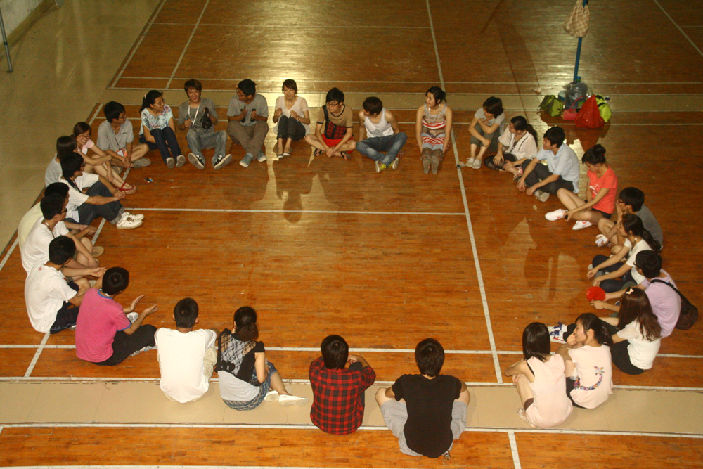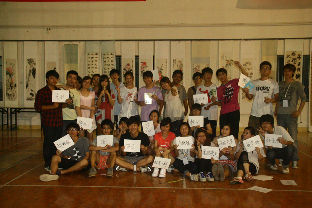 晚饭后,活动成员又到做起了互动游戏。大家先后进行了“词语接龙”、“你来比划我来猜”、“推轮子”、“皮筋接力”等妙趣横生的游戏。其中“皮筋接力”把活动推向了高潮,现场惊叫迭起,爆笑连连,最后,全体活动组成员合影留念。