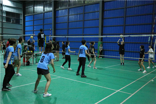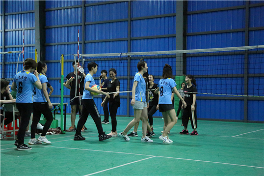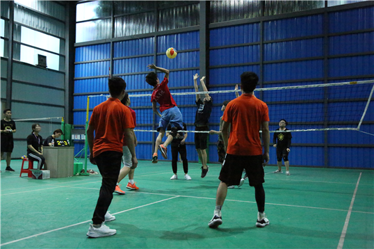 在同学的热切期盼下,比赛正式开始。比赛采用三局两胜的规则,运动员们秉承着“友谊第一,比赛第二”的运动精神,不断的拦网、扣球、防守,在双方啦啦队热烈的加油呐喊助威声中,比赛不断进入高潮,现场气氛持续高涨。比赛过程中,公司参赛运动员们胜不骄败不馁,在连续两场比赛的巨大的体能消耗下,依旧丝毫不泄气,稳扎稳打,凭借精湛的技巧和队员间默契的配合及积极阳光向上的心态脱颖而出,男女两支队伍都顺利进入决赛。