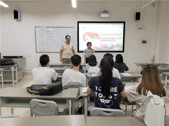 为贯彻落实老员工暑期“三下乡”实践活动精神,7月9日晚上,太阳成集团tyc7111cc团委在人文楼4605教室召开“发挥青春力量 助力脱贫攻坚”2018年老员工暑期“三下乡”社会实践经验交流分享会。
